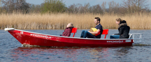 Elektrische motor met gasgever op de hendel welke je met 1 hand kan besturen, zowel met rechts als links. 2 houten bankjes met neerklapbare rugleuning. Vanaf €25,-- voor een uur (doordeweeks buiten hoogseizoen)